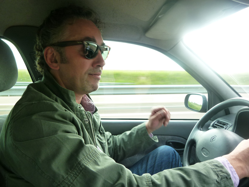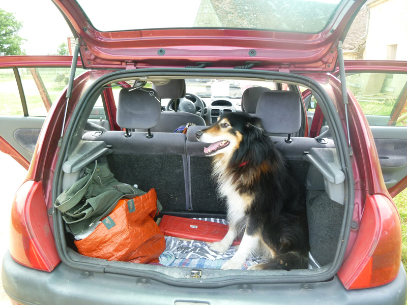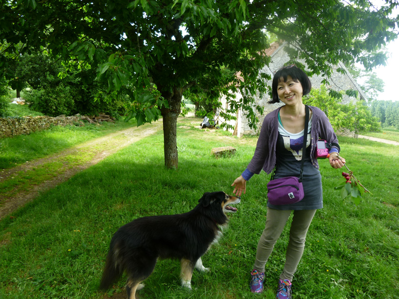 マルシェ仲間のデザンジェリス氏が愛犬と共にフィリップ氏の牧場にナビゲート。