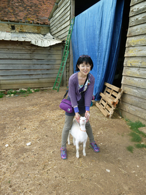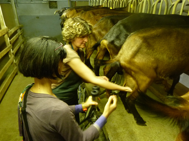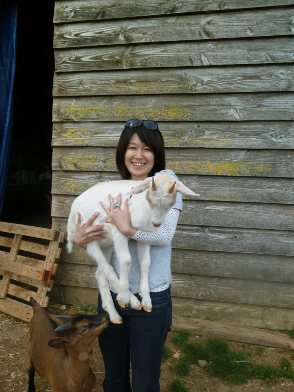 日本から来た友人とともにヤギのチーズの作り手である