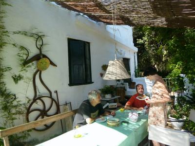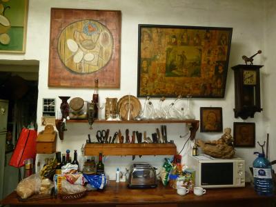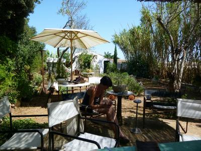 ミノルカ島は初めてで、あまり知識もなく、アンテナに頼って選んだのですが、たまたまとった部屋(ネウスの家)が素晴ら〜しく良く!海もきれいで食べ物もおいしく、人も穏やかでたちまち気に入ってしまいました。そこがどんな所かと言うと、ネウスと絵描きの旦那さんジョゼッペが大きなお家にすんでいて部屋を貸していると言う感じなんですけど、お部屋のセンスがアーティスティック!全部写真に収めたいぐらいそこかしこに魅力があふれているんです。そんな2人に会いに来ていると言う具合いに人が集まっていてミュージシャンやデザイナー絵描き等宿泊客はアーチスト。