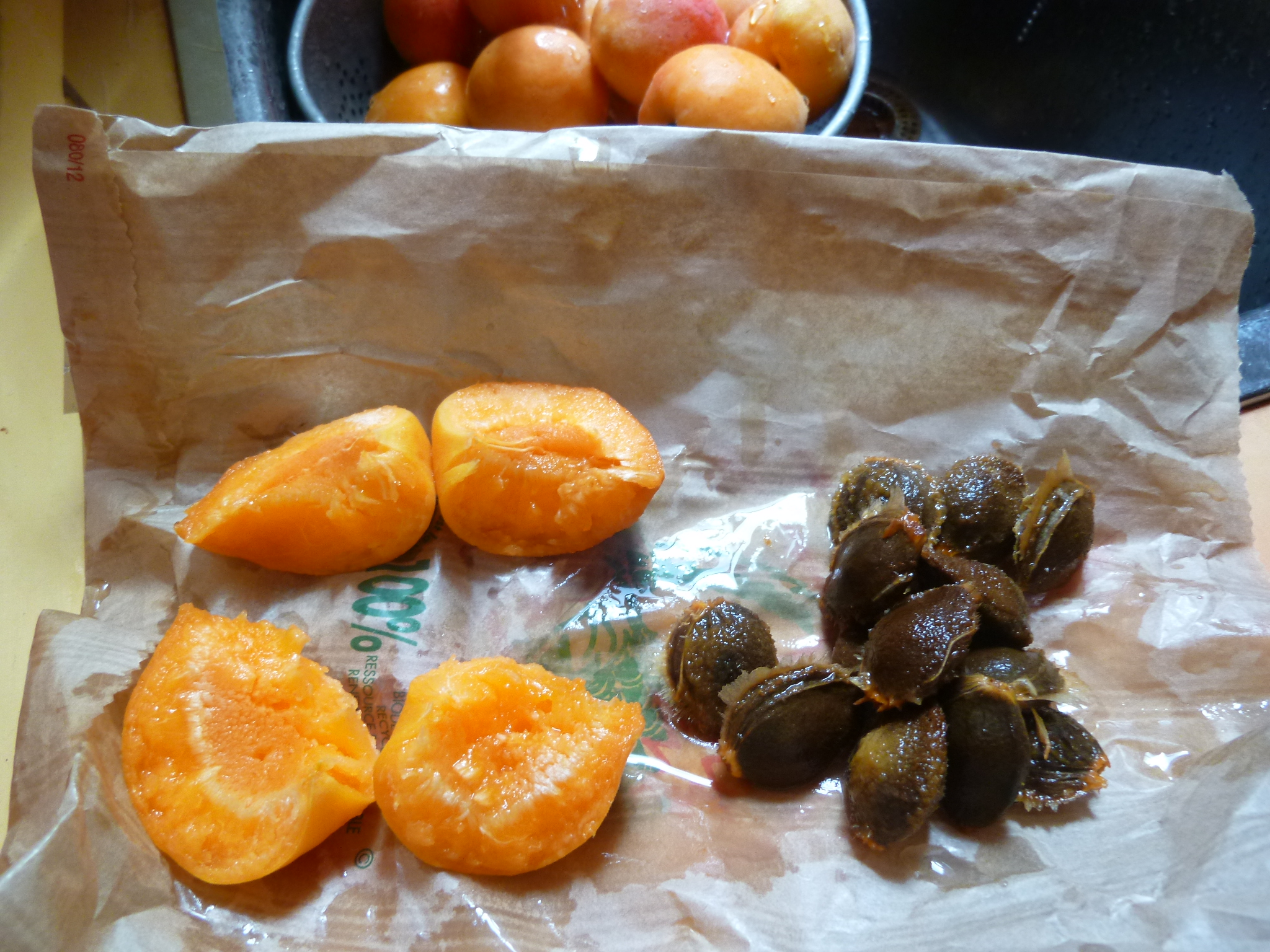 種は乾燥させて取っておきます。後で杏仁豆腐にするとスッゴーく美味しいです。