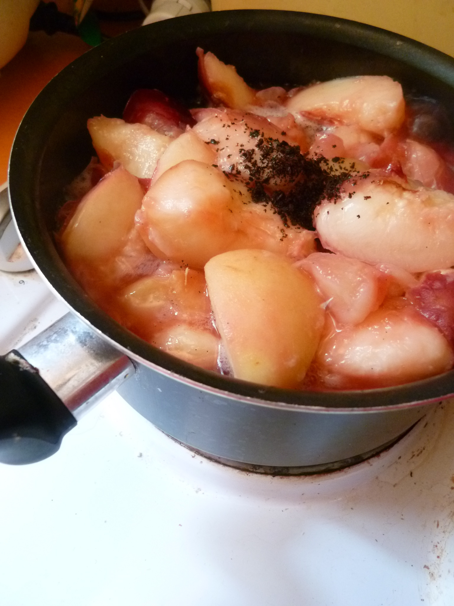 こちらは桃のコンポート。アマレットとシロダガブとバニラであっさりと仕上げます。
